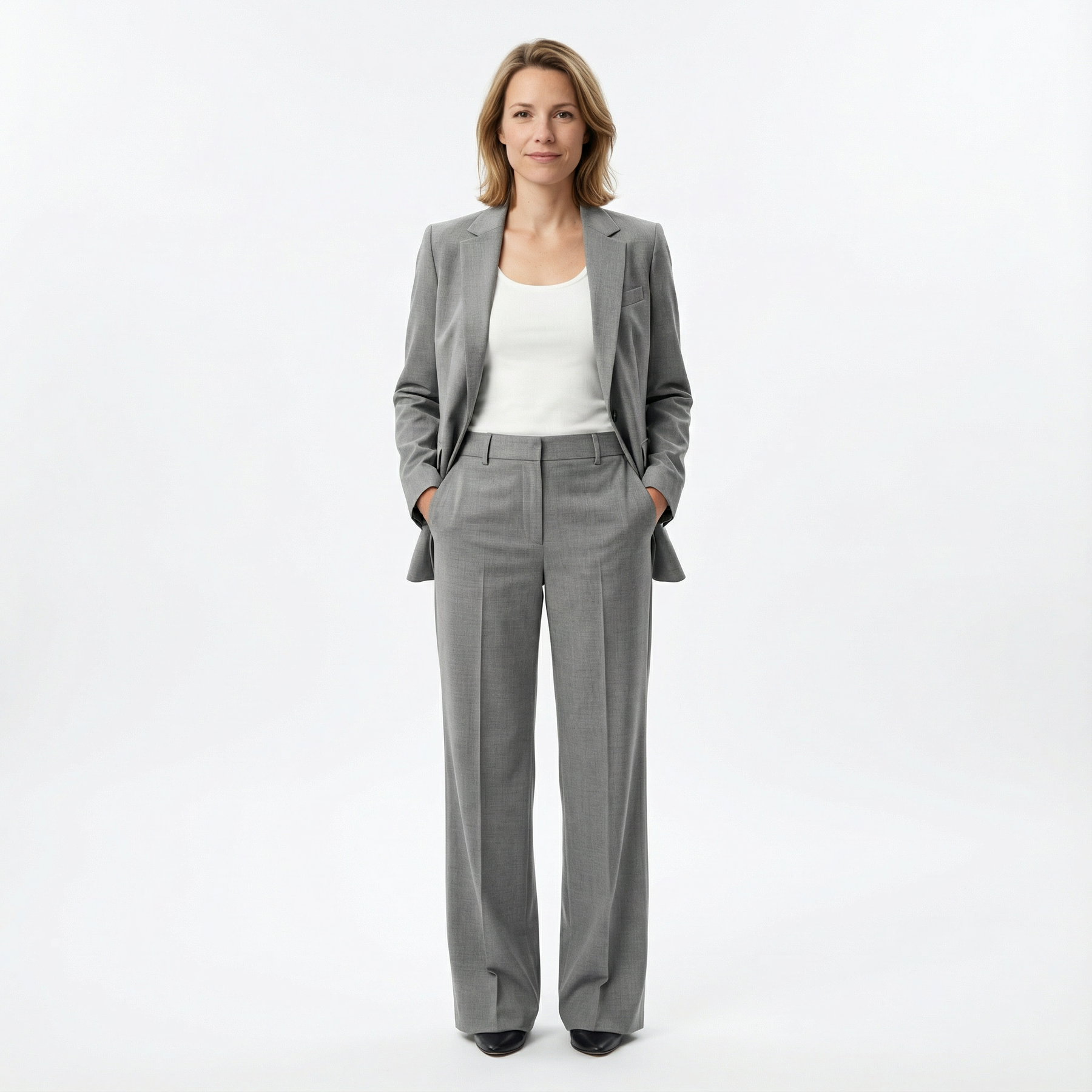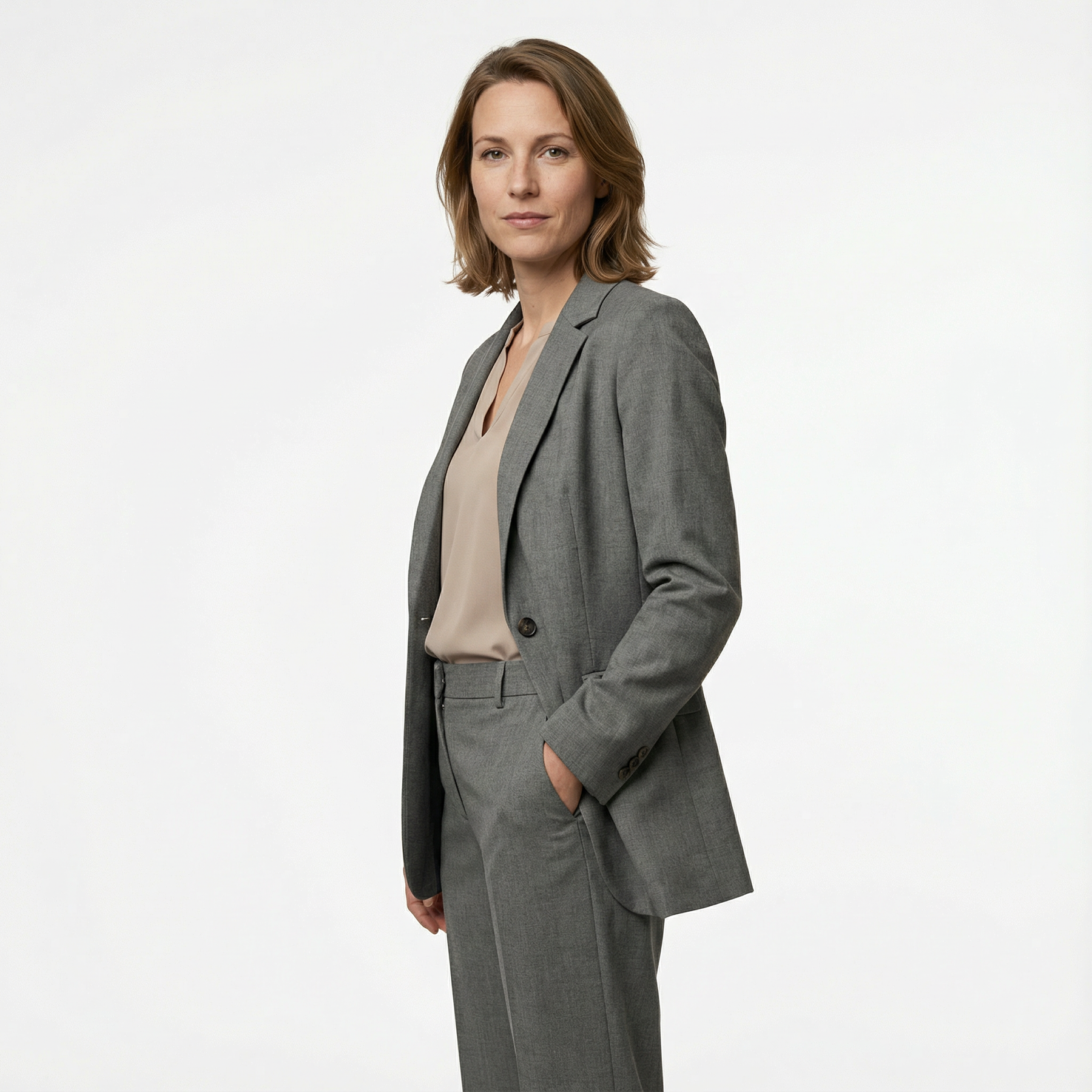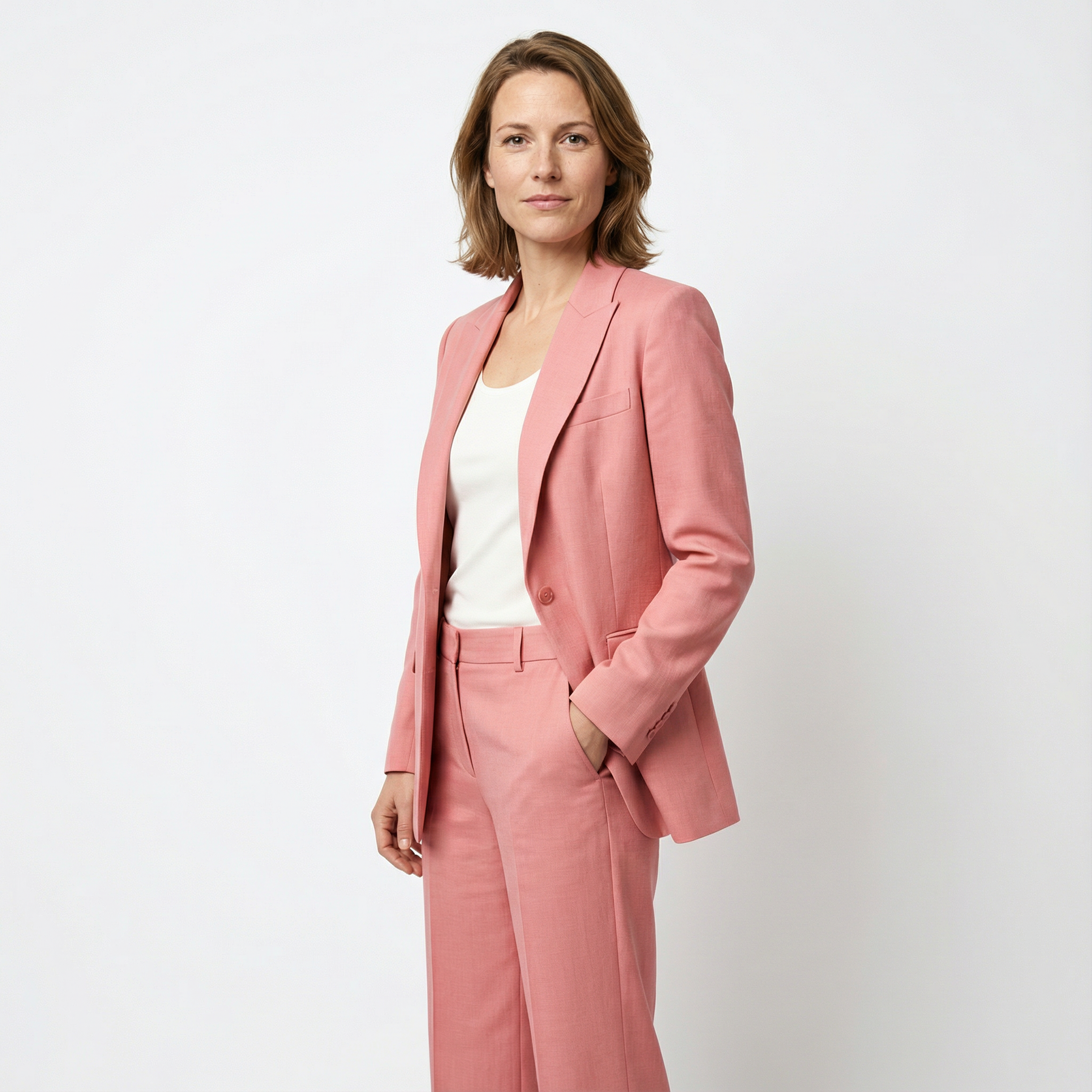 Dieser Damen-Zweiteiler überzeugt durch hochwertige Materialien und eine klare, ausgewogene Schnittführung. Jacke und Hose sind aufeinander abgestimmt und bieten ein angenehmes Tragegefühl bei zugleich gepflegter, eleganter Ausstrahlung. Die Materialkombination sorgt für Bewegungsfreiheit, Formstabilität und zuverlässigen Komfort im Alltag.
