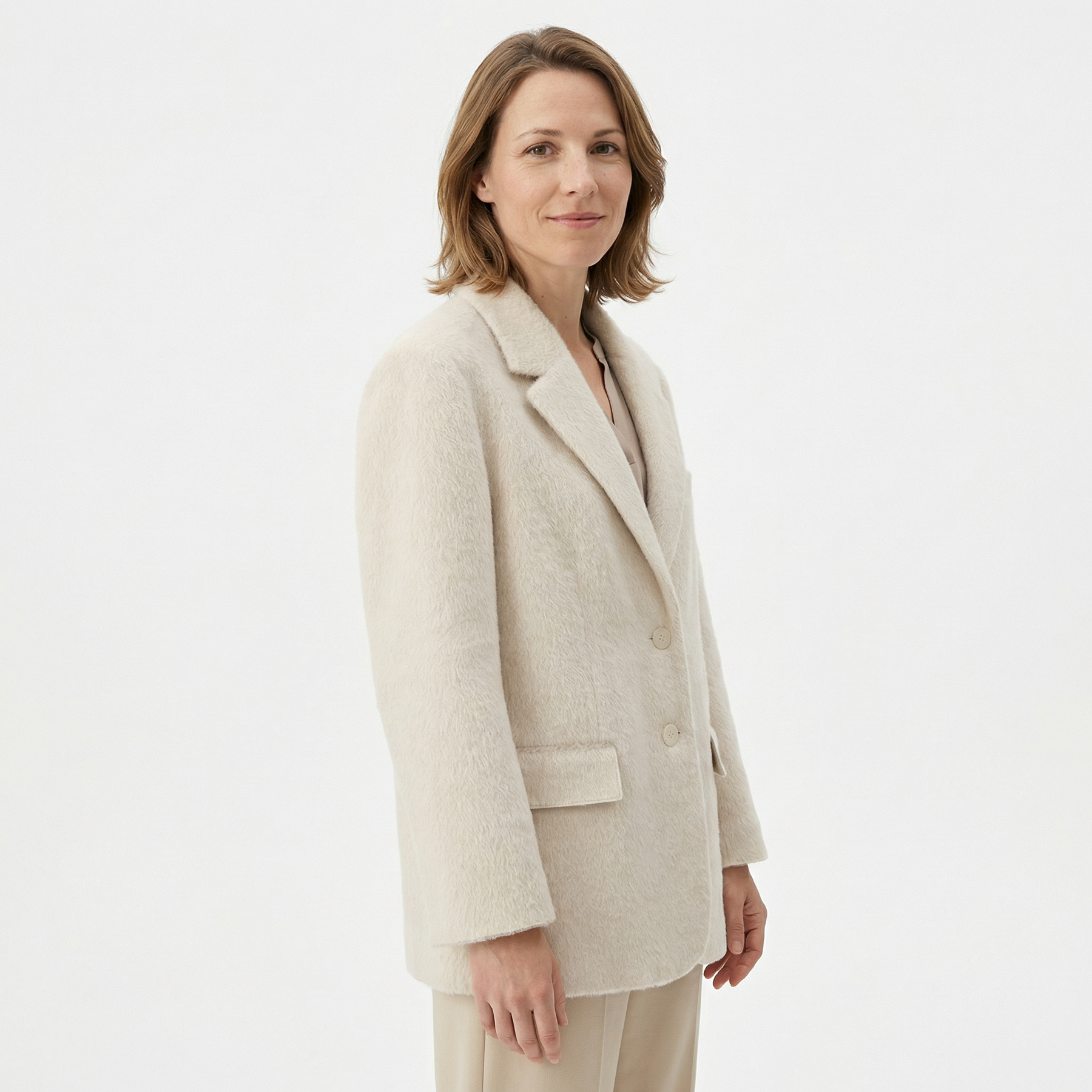 Dieser lange Blazer aus hochwertigem Kunstfell vereint Stil und Komfort auf elegante Weise. Die gerade Passform und das weiche Material sorgen für eine luxuriöse Ausstrahlung, während der Blazer ideal für kühle Tage ist. Perfekt kombinierbar über Business-Outfits oder für abendliche Anlässe – für einen Look, der immer stilvoll wirkt.