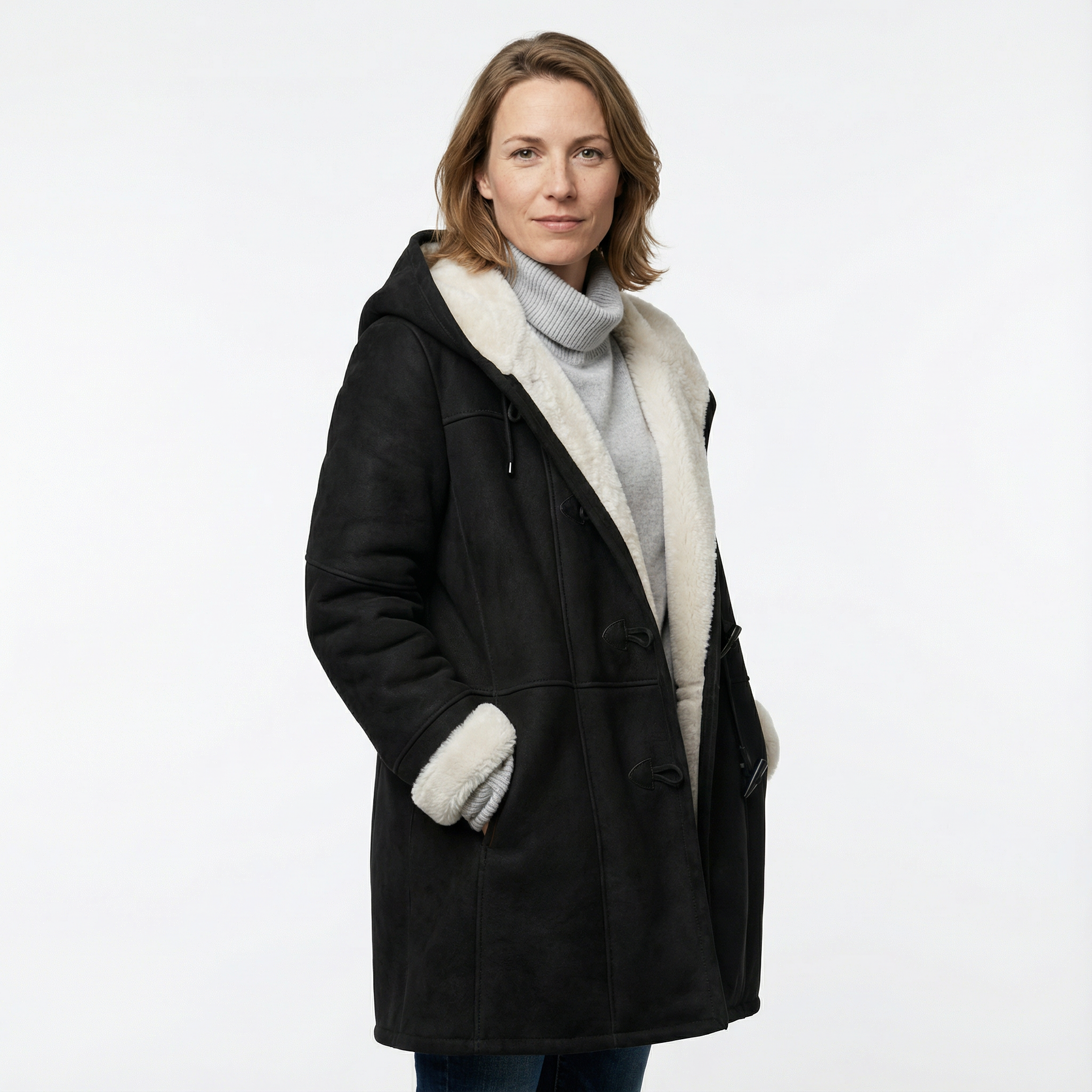 Dieser Damen-Dufflecoat überzeugt durch eine zeitlose Optik und zuverlässigen Wärmekomfort für kalte Tage. Das weiche Innenfutter sorgt für angenehme Isolation, während das klassische Design eine klare, strukturierte Ausstrahlung bietet. Ein funktionaler Wintermantel mit langlebigem Charakter und ruhiger Eleganz.