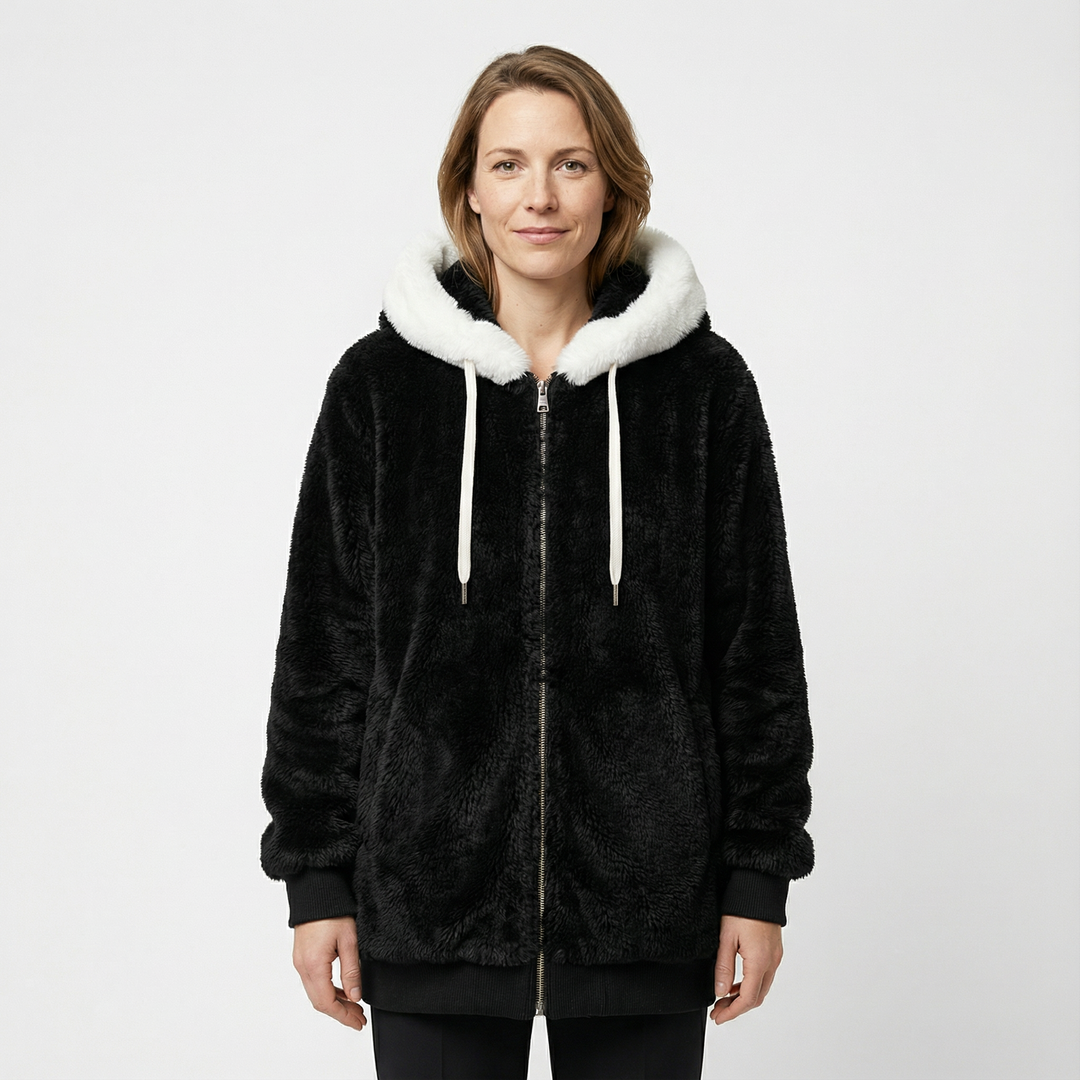 Damen Fleece Winterjacke mit Kapuze