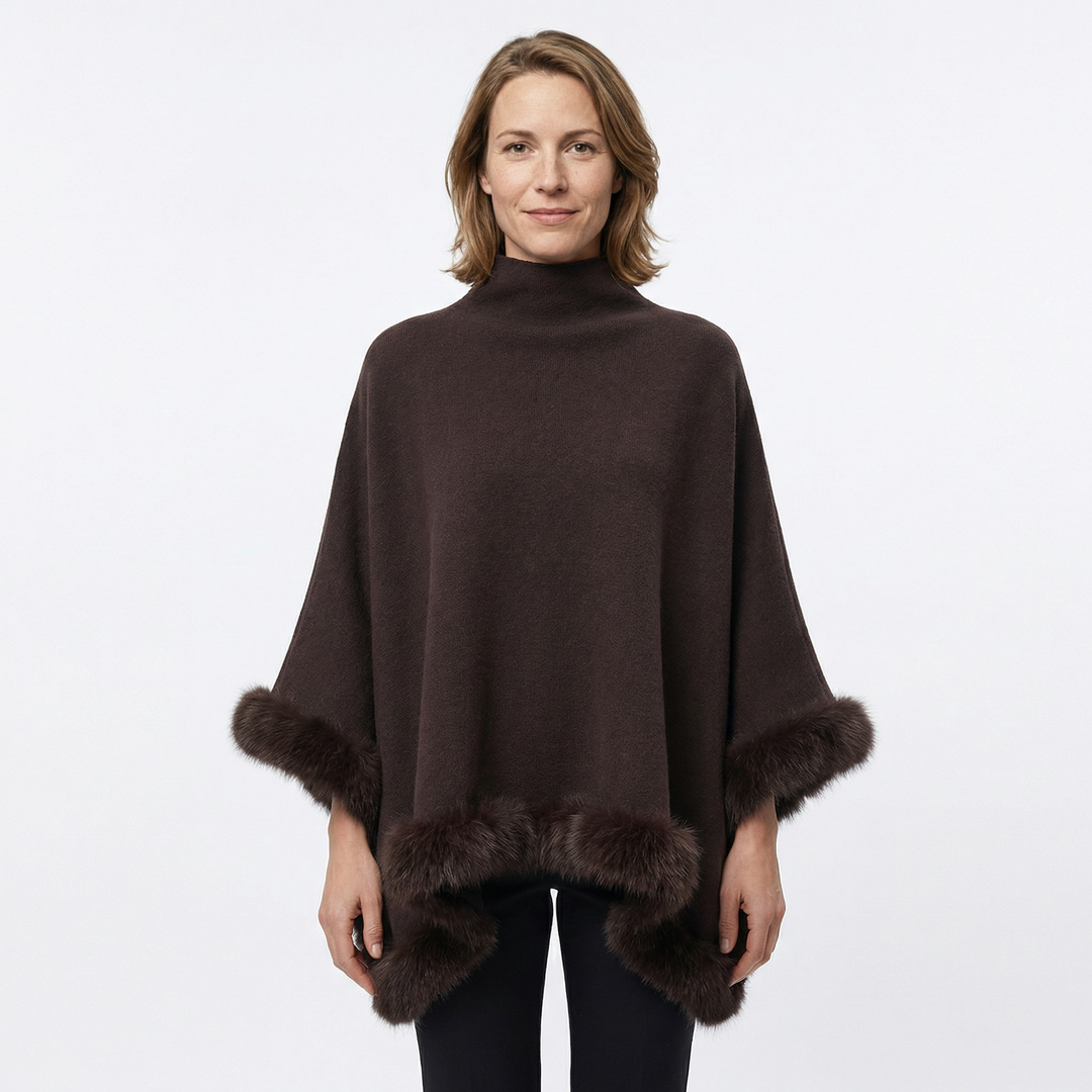 Damen Cape Jacke Kunstpelz Luxus