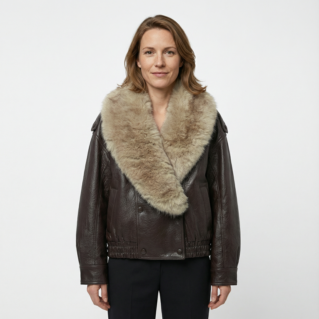 Damen Lockere Kunstleder Winterjacke