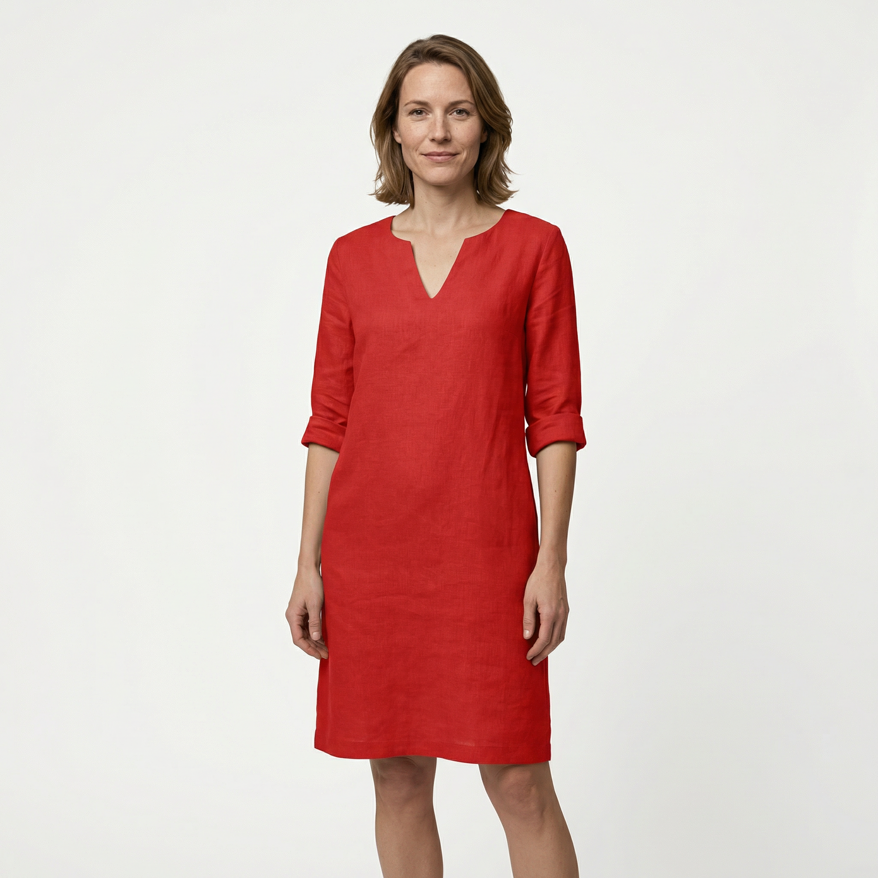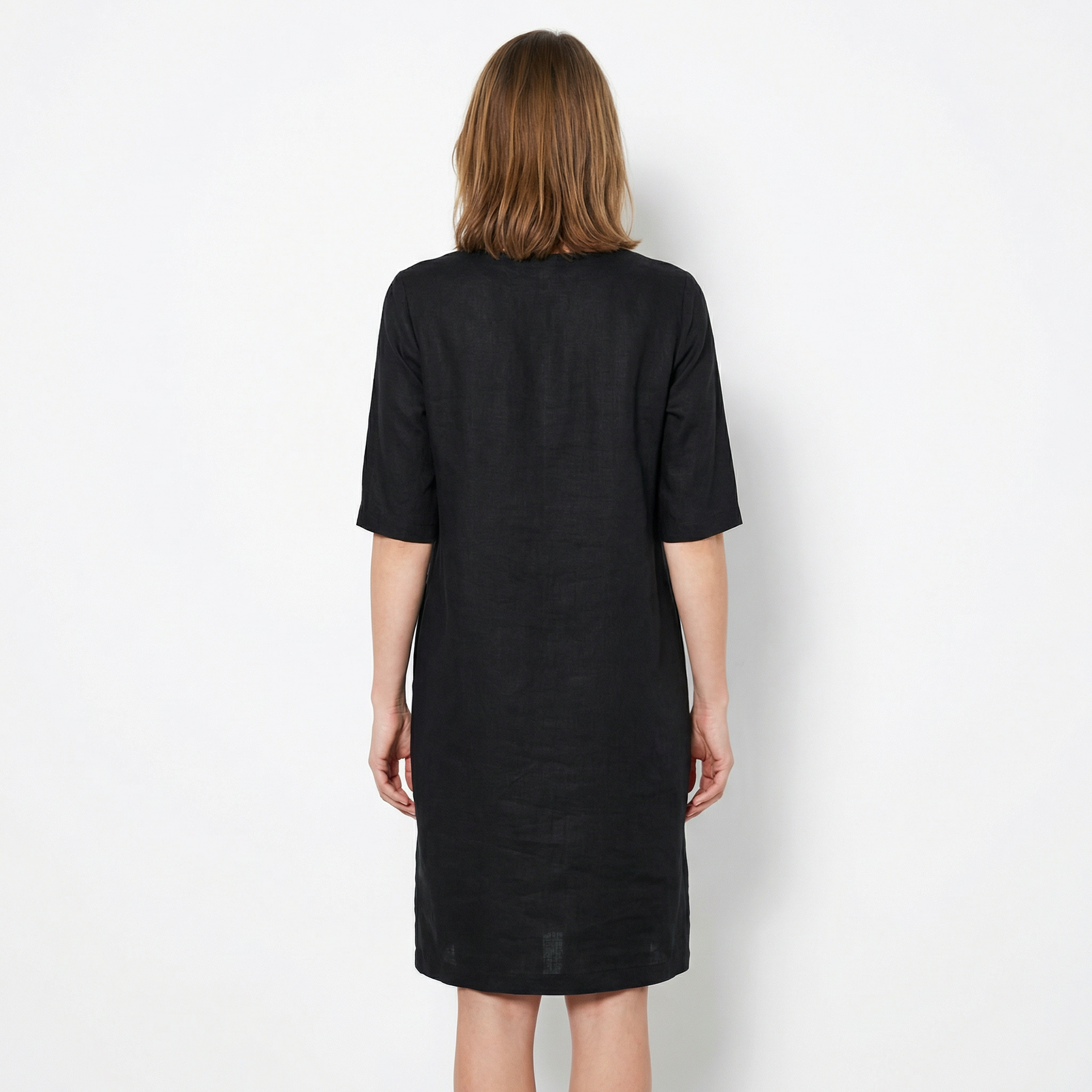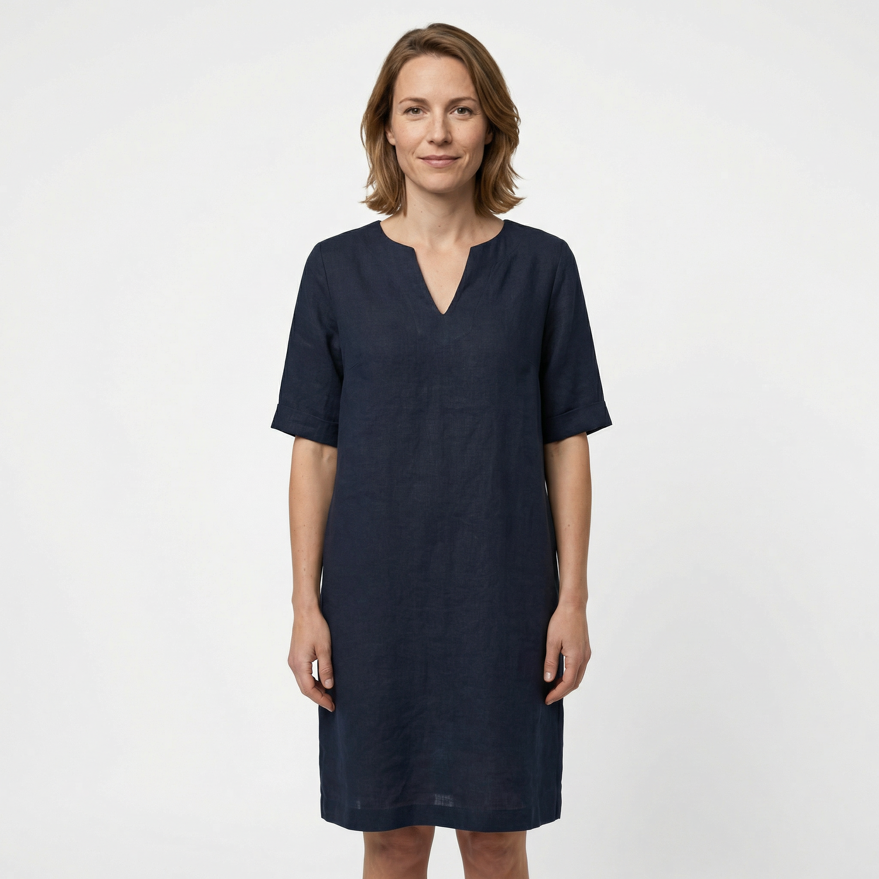 Dieses feminine Minikleid kombiniert klare Linien mit zeitloser Eleganz. Der schmeichelnde V-Ausschnitt und die luftigen 3/4-Ärmel sorgen für einen stilvollen Look, der den ganzen Tag über bequem bleibt. Ideal für Arbeit, Freizeit oder einen spontanen Abendtermin.