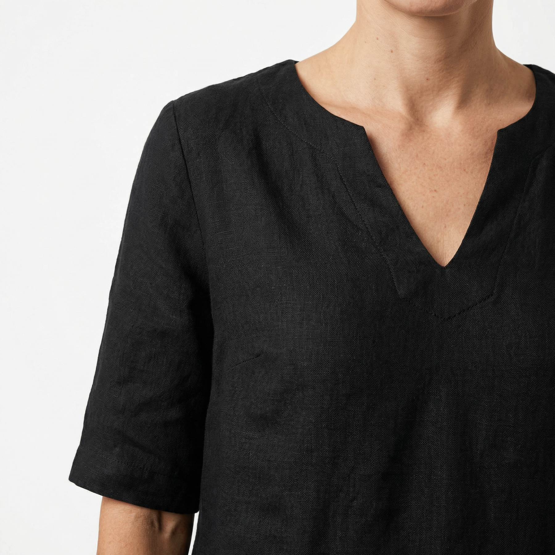 • V-Ausschnitt betont die Silhouette und wirkt elegant feminin