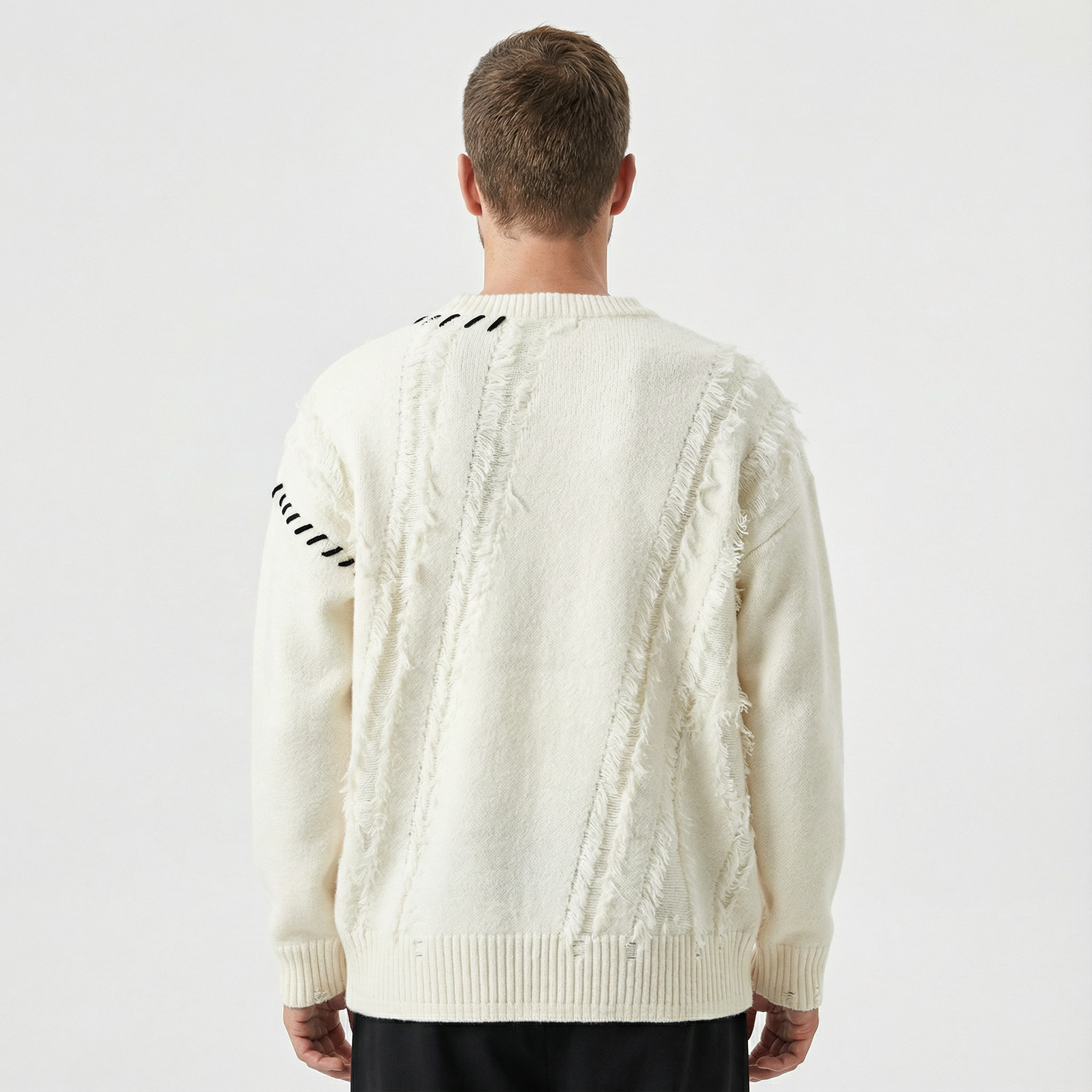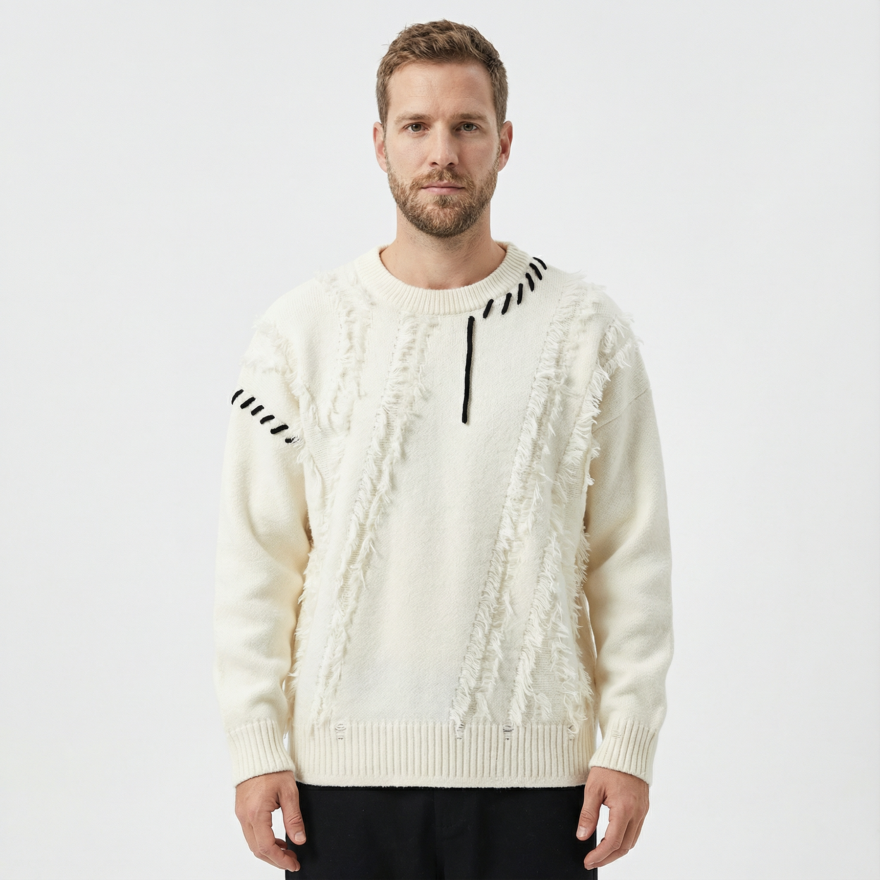 Dieser Herrenpullover verbindet lässige Eleganz mit angenehmer Wärme für kühlere Tage. Der lockere Schnitt sorgt für ein entspanntes Tragegefühl, während das besondere Design dem Look eine individuelle Note verleiht. Ein vielseitiges Essential, das sowohl casual als auch stilvoll kombiniert werden kann.