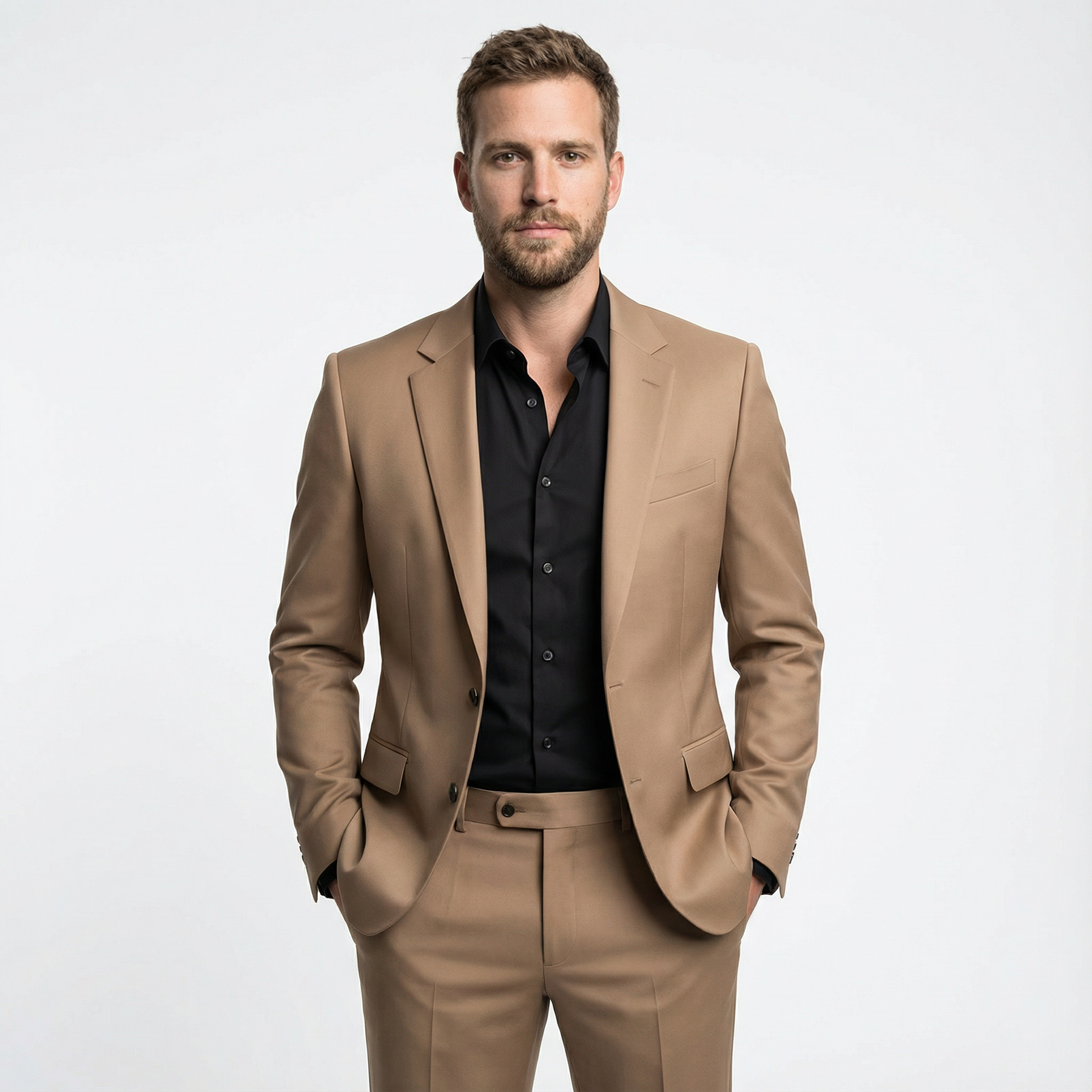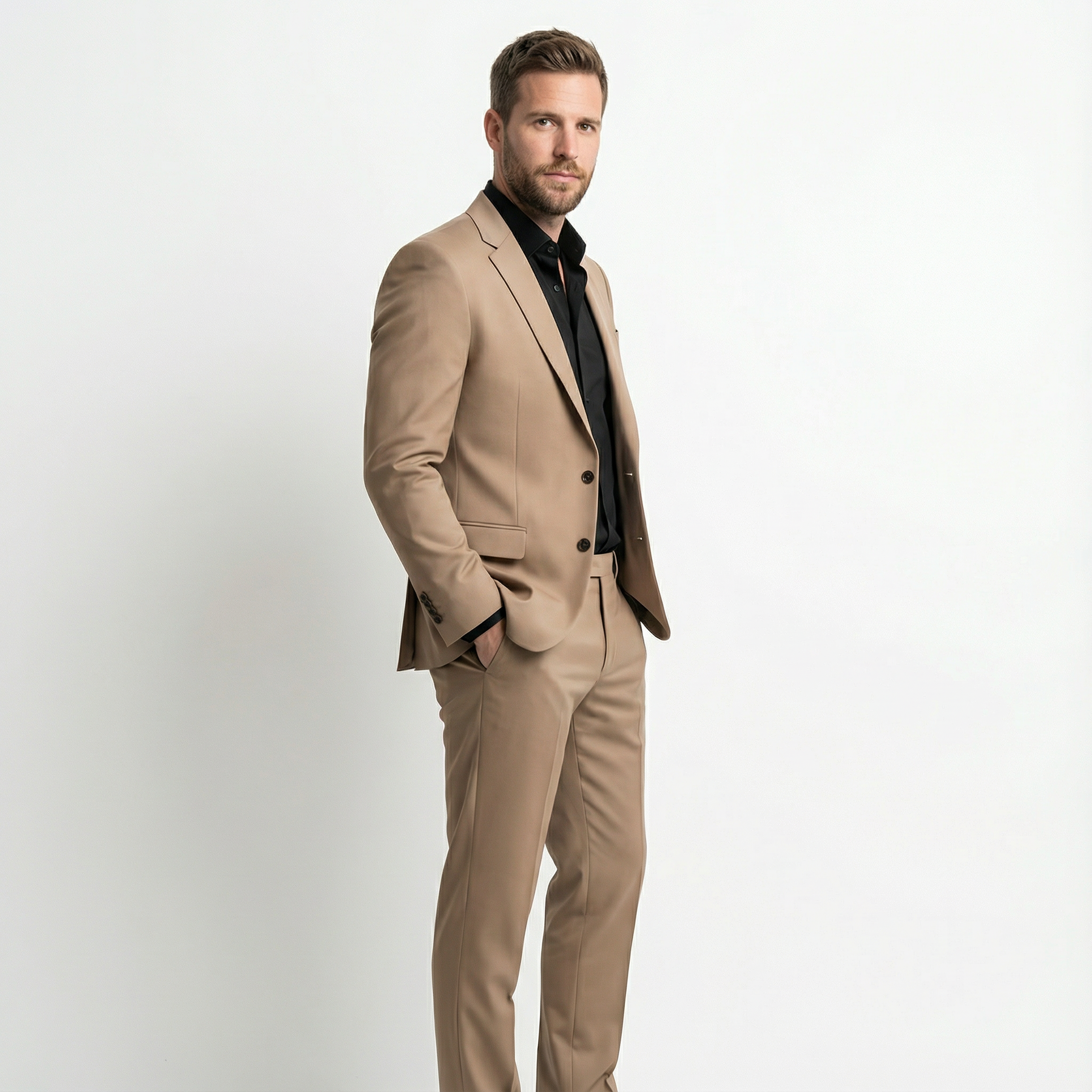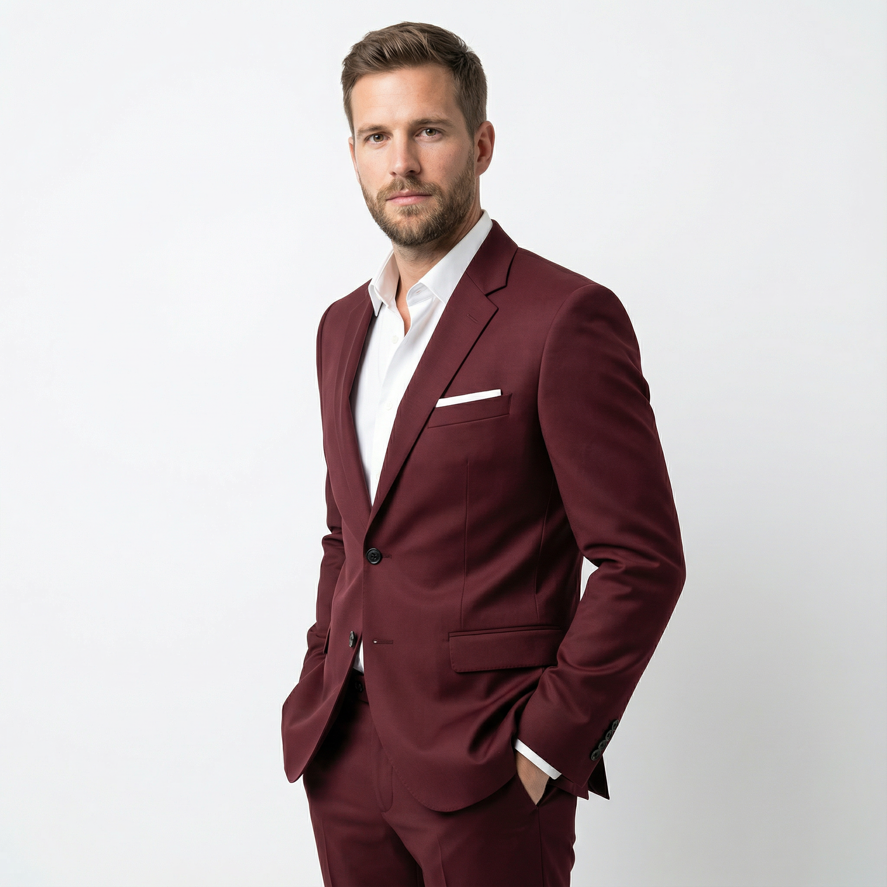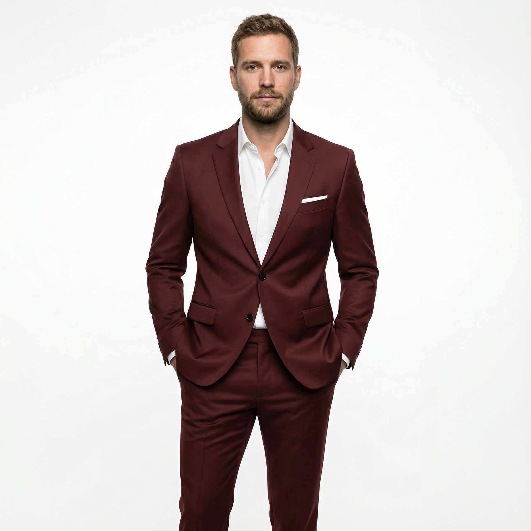 Dieser zweiteilige Herrenanzug steht für moderne Schneiderkunst und einen souveränen Auftritt. Das einreihige Sakko mit klaren Reverslinien und die passgenaue Hose formen eine schlanke, elegante Silhouette. Ideal für Business-Termine, formelle Anlässe und stilvolle Abendauftritte.