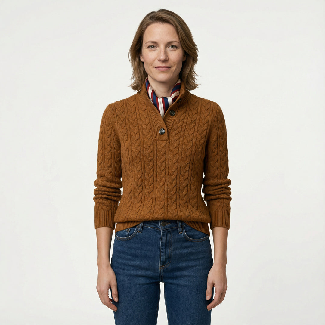 Damen Kaschmir Strickpullover Knopfleiste