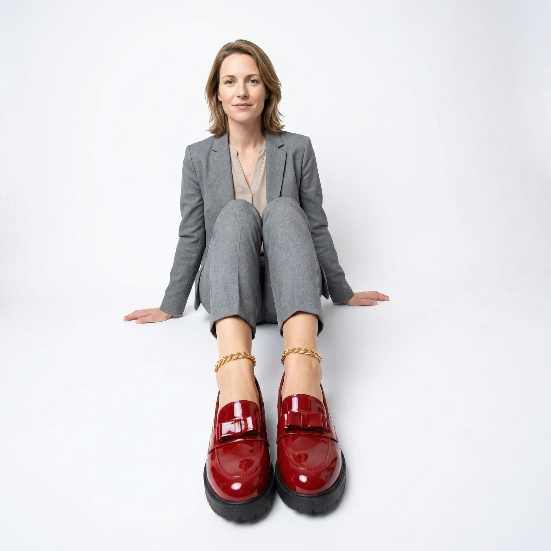 Diese stilvollen Damen-Loafer aus glänzendem Lackmaterial setzen ein modisches Statement mit femininer Note. Die dekorative Schleife und die klassische Form verleihen dem Design eine elegante Ausstrahlung, während die bequeme Sohle für angenehmen Tragekomfort sorgt. Perfekt für Alltag, Büro oder stilvolle Freizeitlooks.